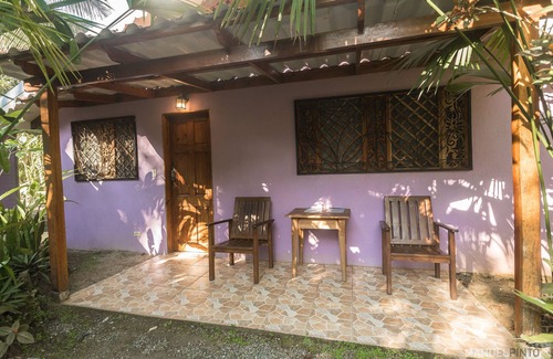 Welcome to Casa Violeta, a colorful beachfront home in the heart of Punta Uva, just steps from Arrecife Beach — one of the most beautiful in Costa Rica. This authentic Caribbean house offers 3 bedrooms and 3 bathrooms, blending rustic charm with modern comfort, and can host up to 7 guests.The master suite sits in its own private bungalow with a king-size bed, A/C, and ensuite bathroom, plus a small outdoor sitting area for morning coffee. On the ground floor of the main house, you’ll find a double bedroom with private bath and fan cooling. Upstairs, a spacious family-style bedroom with one double and one twin bed features A/C and its own private bathroom — perfect for kids or groups.At the center of the house is a fully equipped kitchen with a wide pass-through window connecting directly to the covered outdoor dining room overlooking the garden. An open-air living room with cozy seating invites you to relax, play games, or enjoy evening drinks while listening to the sounds of the jungle. Outside, you’ll also find a BBQ grill for casual meals at home.Stay connected with high speed internet, enjoy the lush tropical garden, and take advantage of private parking for two cars. Casa Violeta is also pet friendly, so your furry friends can enjoy the beach, too.Cross the street for a casual local bar/restaurant, or walk a few meters to the sand and dive into Punta Uva’s turquoise waters. With its unbeatable location, authentic Caribbean charm, and modern comforts, Casa Violeta is the perfect base for a family vacation, friends’ getaway, or romantic escape.