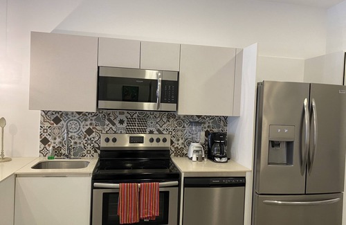 The spacious apartment features 3 bedrooms and 2 bathrooms, complete with modern amenities such as plush bed linens, fresh towels, and a flat-screen TV with cable channels. Enjoy meals in the dining area or prepare your own culinary delights in the fully equipped kitchen.
