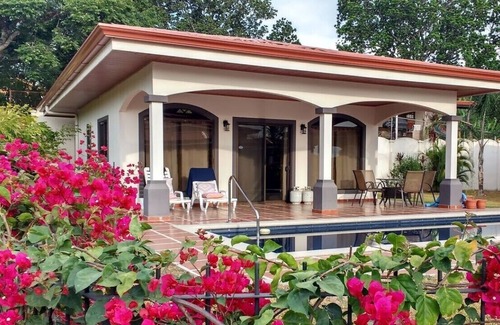 Fully furnished 1 bedroom bungalow with pool in small gated community, 3 km west of Atenas, a friendly Tico town of 27,000 with a beautiful town square, quaint shops, and a weekly farmer's market. In coffee country. Great year round climate, 80s daytime and 60s at night. 1 hour from Pacific beaches. Convenient base for day trips to the rain forest, Poas volcano, Sibu chocolate farm, Toucan Rescue Ranch, La Paz Waterfall Garden, among others sites. 1/2 hour to San Jose airport. Good WiFi.